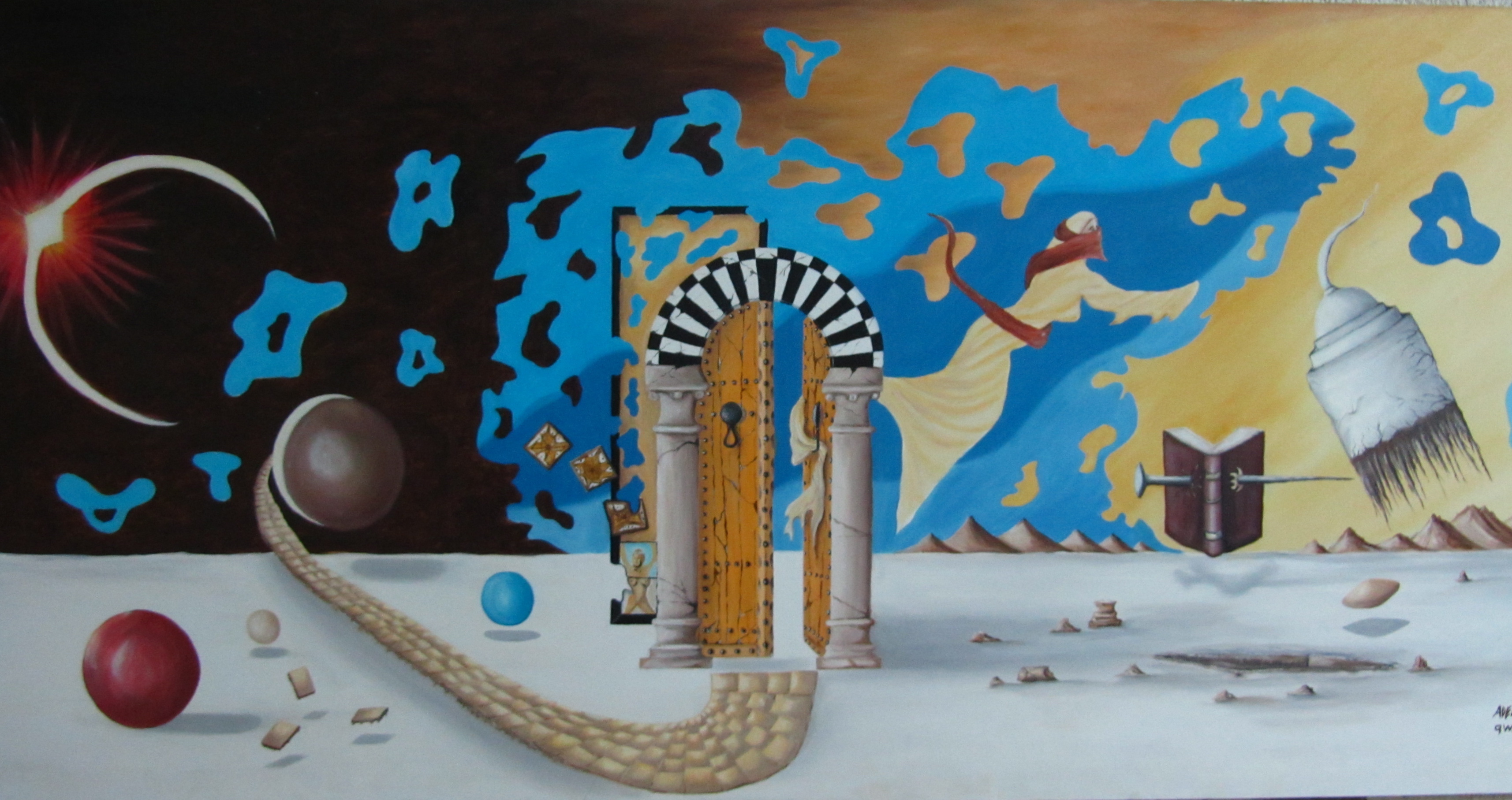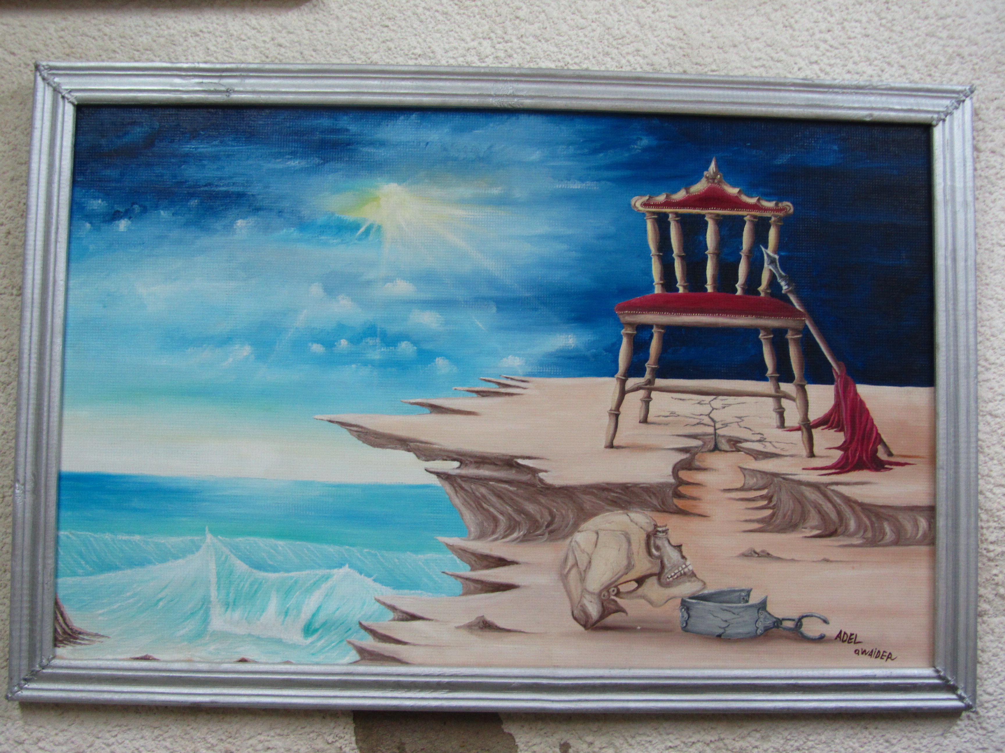 Inside the open cells, white walls and arches of the Maison des Associations Achouria, in a back corner, behind columns of simple hanging oil paintings of Arab, Berber, Bedouin scenes, I saw a sign for Club Peinture Animé. Following still deeper into the soul of impulsive wandering I stepped into the small classroom, a few Tunisian pupils with pencil and brush hung on the personalized instruction of their resident Dali, the Jordanian surrealist painter Abdel Qwaider.
