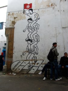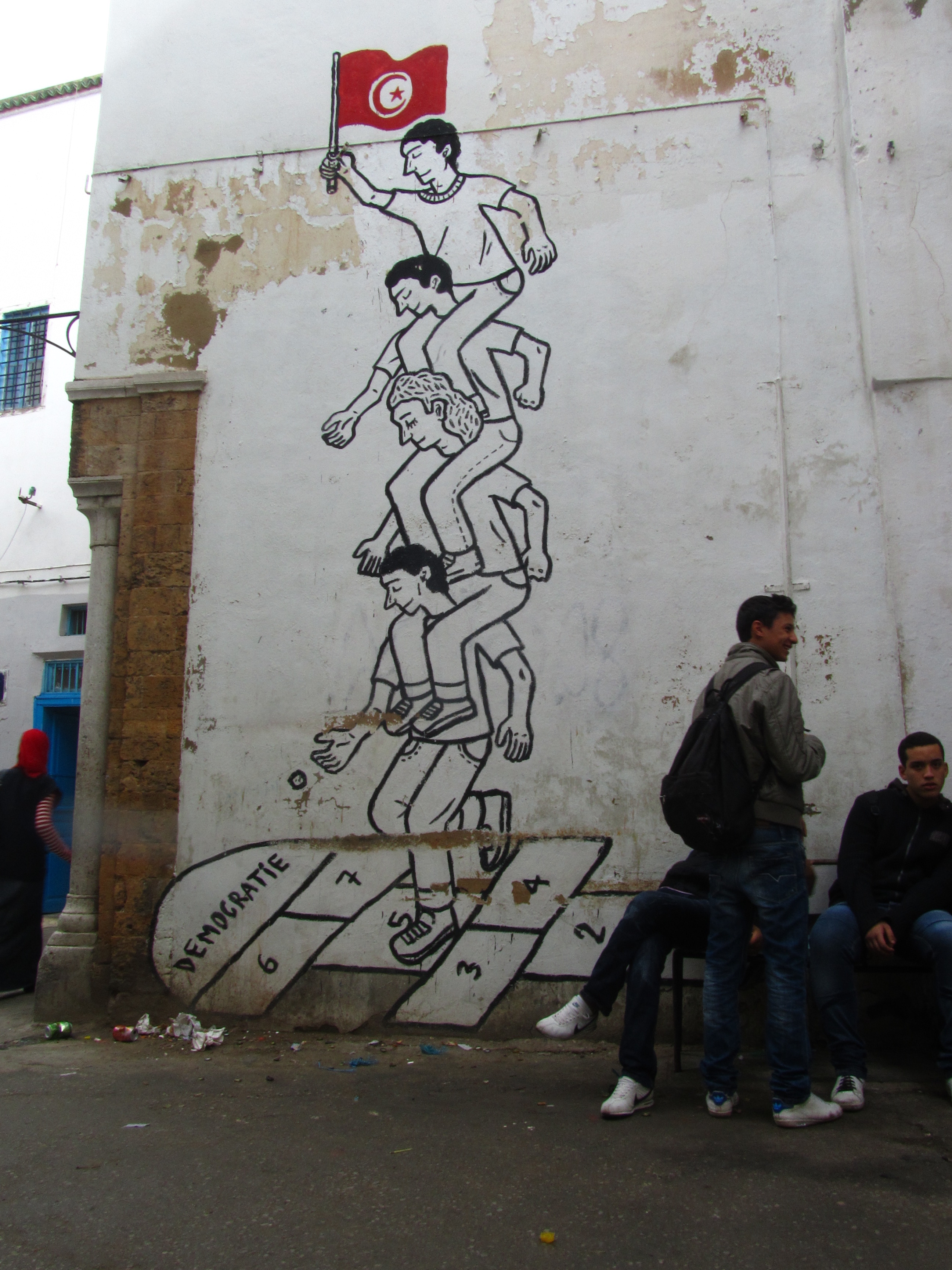 MC: Often those who become active with public art are more radical politically. There is a connection between anarchist political ideas and street art. Has there been a place for Tunisian anarchists? What has been the connection between politics and art?