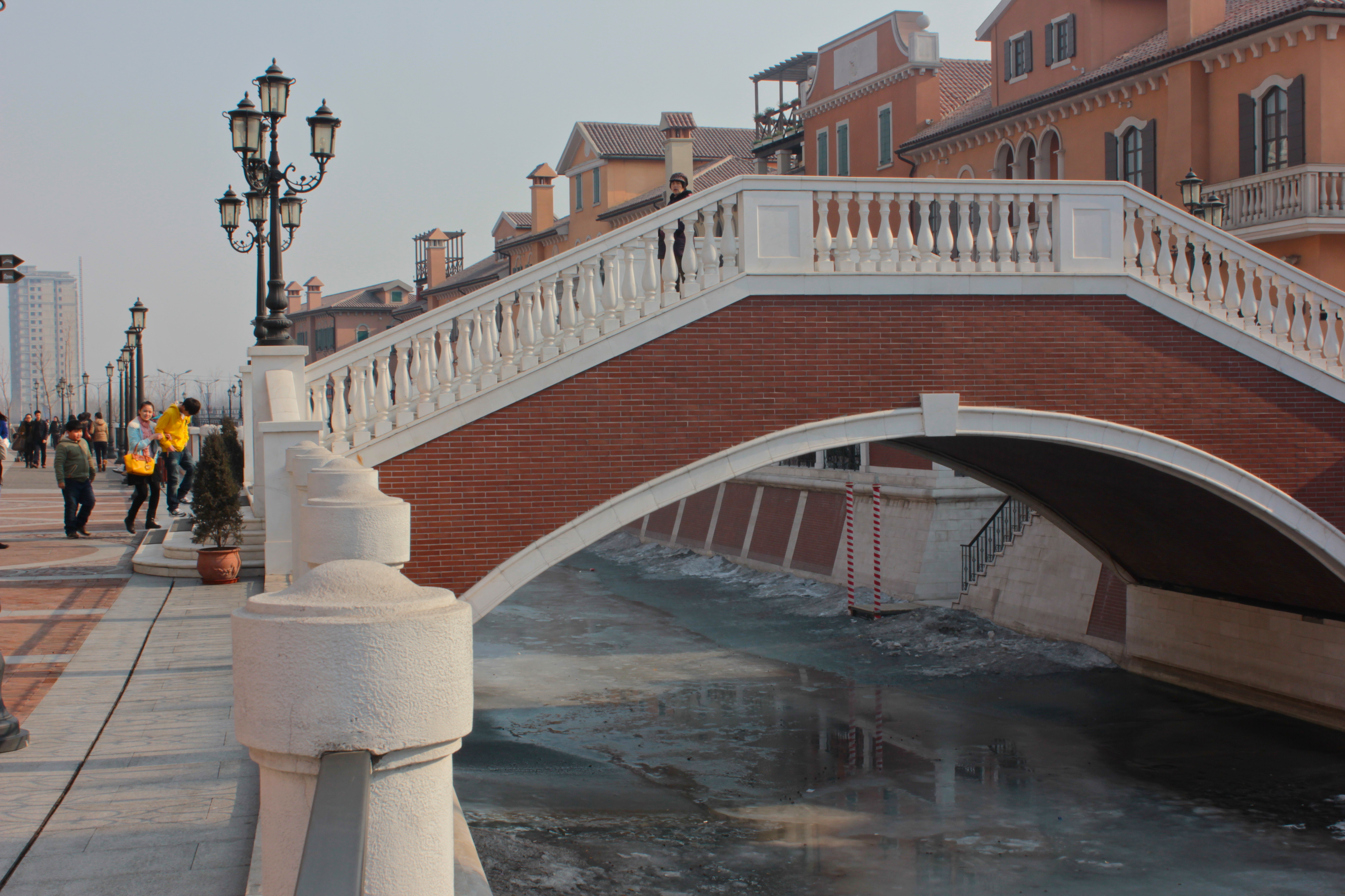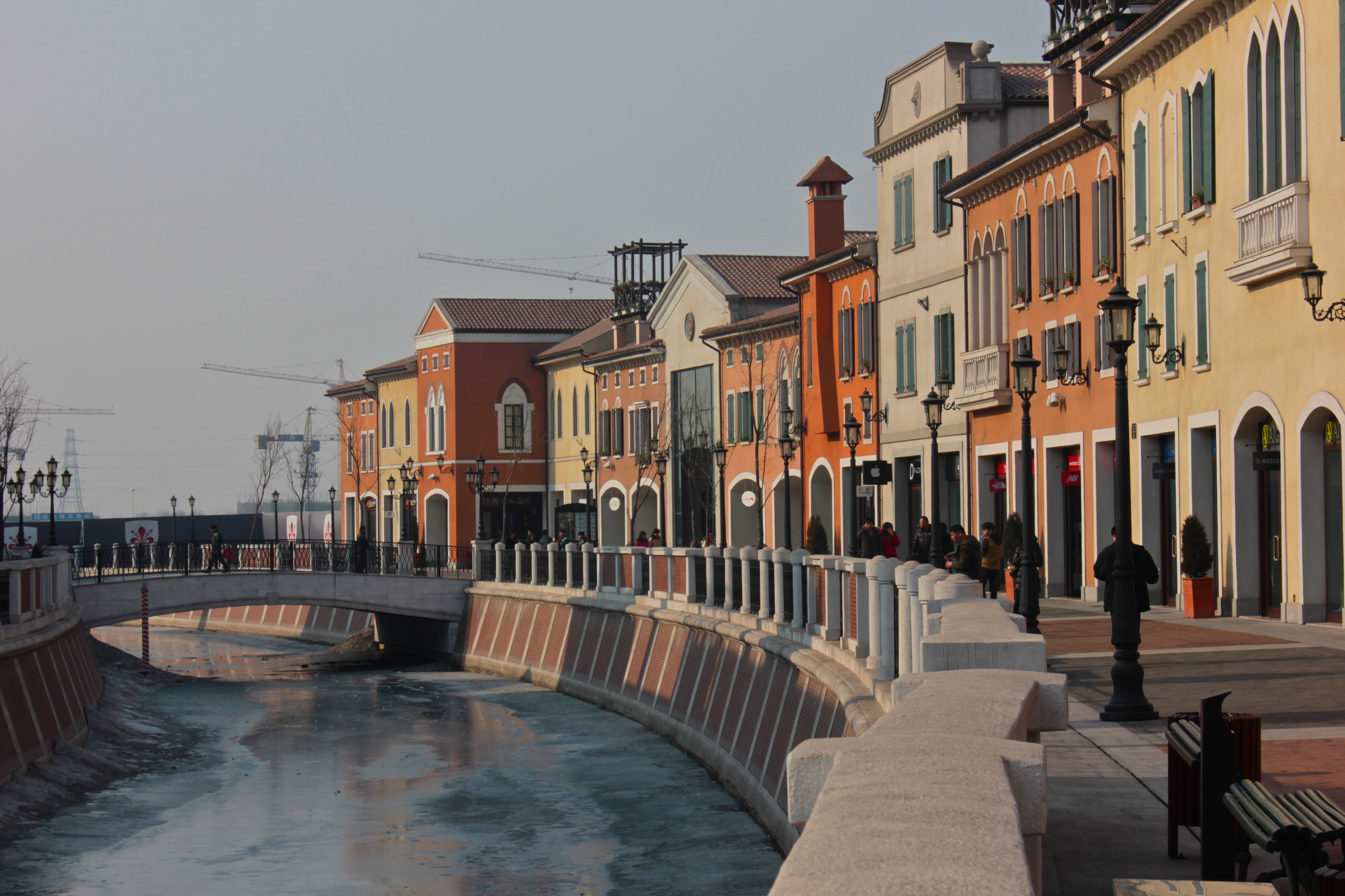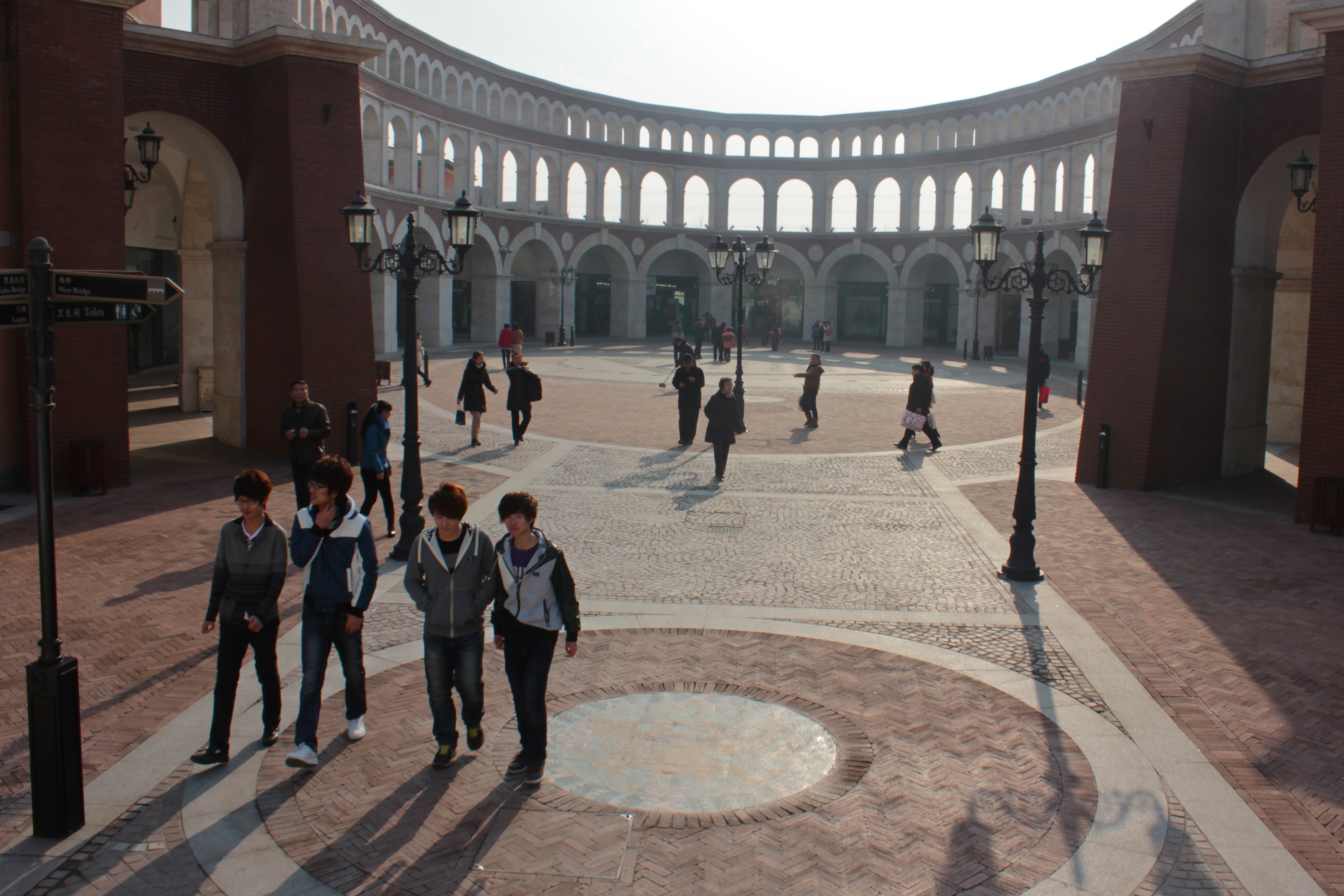 Out along the high speed rail lines, somewhere between Beijing and Tianjin is the Italian themed outlet mall Florentia Village. The pastiche of Roman, Venetian, Florentine and Chinese styles, facades, walkways, and faces is replete with a miniature canal ride fit for a low budget Disneyland ride, a pizza chain, and Costa coffee. The stores are all name brands and luxury goods marked down for convincing consumption. The patrons stroll with bulging packages, paper and plastic bags that themselves have become mobile advertisements for Gucci, Tommy Hilfiger, Puma, and Omega. In the foreground is an attempt at misting the waters of Lethe over the shopping Chinese and occasional foreign denizen, to forget their troubles and their location; their worries will be put on hold by generating this ersatz holiday in Tuscany or Rome. It is another of China’s growing massive collections of the Other, the outside, the copied ruins and cathedrals, a riverside manse or an iconic tower. Here in Florentia village one doesn’t forget that they are in China, one is only reminded that China is a surreal place, where the cliche is still valid, that there are many Chinas and many of them are fake, or filled with fake things.